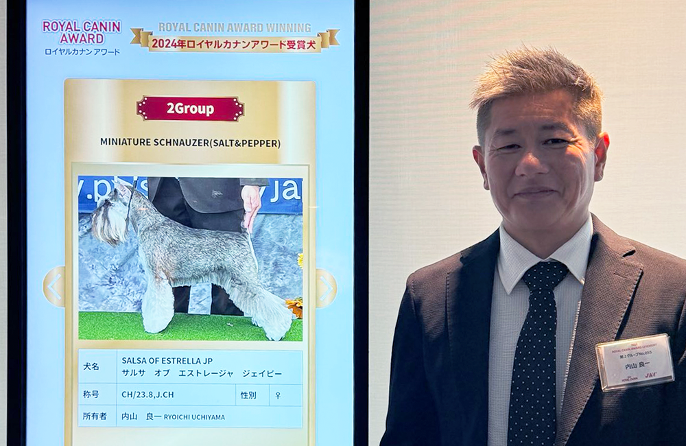 2025年5月14日、東京都内で開催された「ROYAL CANIN AWARD 2024 授賞式」において、当犬舎が誇るミニチュアシュナウザー「ウィズ(ソルト&ペッパー♀)」が、栄えある賞を受賞いたしました。このアワードは、1年間に渡りドッグショーの世界で活躍した犬... -