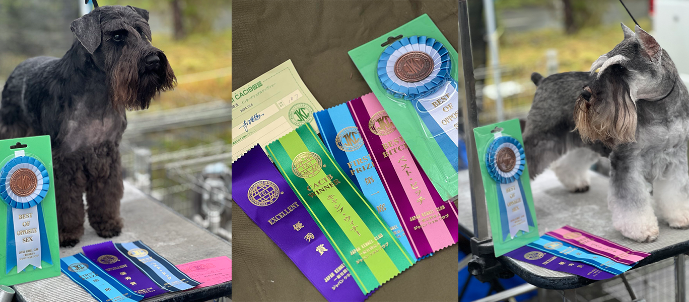 通常のクラブ展では、国内向けのタイトル「CCカード」などが目標ですが、インターナショナルショーでは、世界に向けて認められるチャンピオンシップがかかっています。